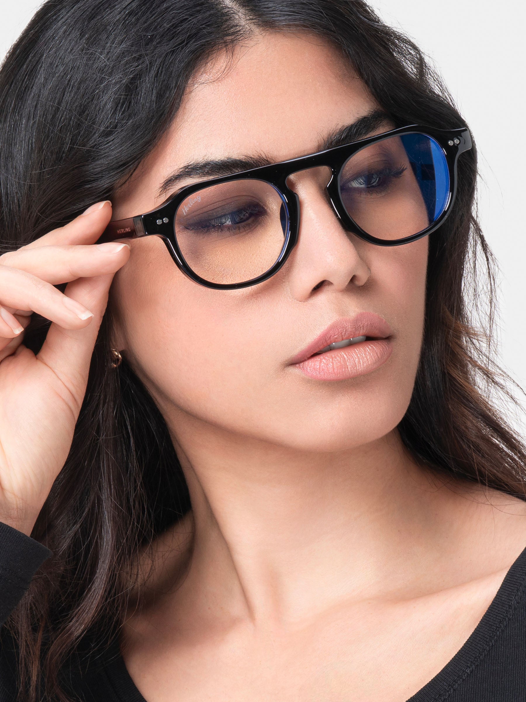 Mas a estética não é tudo. As lentes com filtro de luz azul oferecem proteção contra raios nocivos emitidos por telas digitais (computador, smartphone, tablet, televisão), garantindo que sua visão esteja protegida enquanto você trabalha, se diverte ou navega online. Esta proteção permite-lhe concentrar-se durante mais tempo, reduzindo o cansaço visual e melhorando o seu conforto visual.